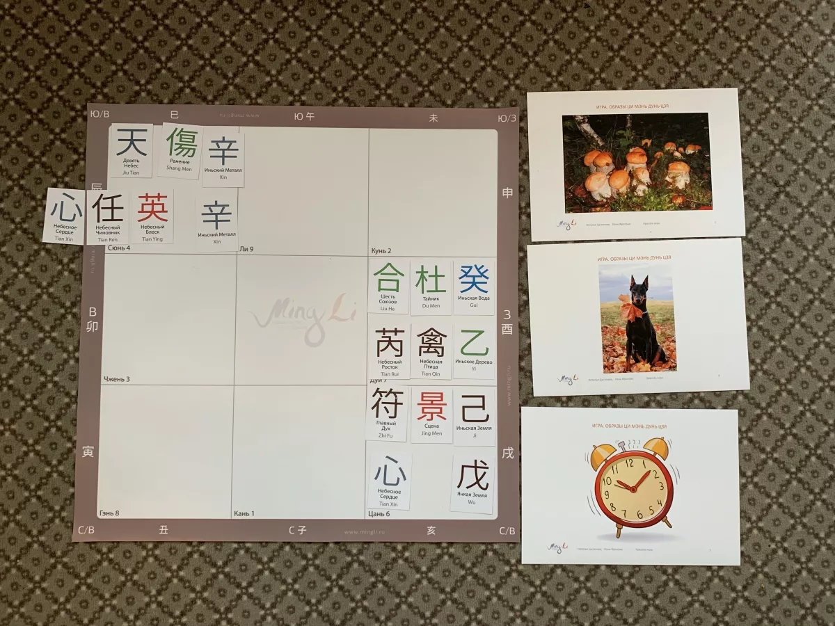 Этот раз практический тренинг был дополнен – Лена Фролова не только сделала новую рабочую тетрадь. Мы придумали и создали наборы карт Ци Мэнь Дунь Цзя для закрепления цимэнских образов на практике. И наша "Красота" действительно стала игрой! Ведь чтобы эффективно использовать время, нужно сориентироваться в карте и применить творческий подход.