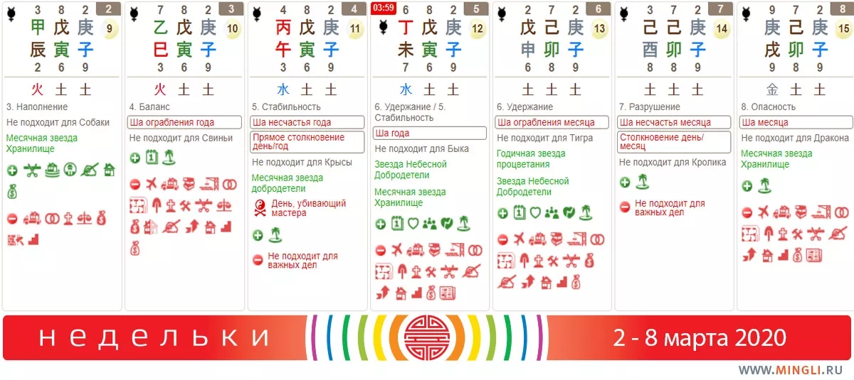 4 марта, среда. Лучше всего подойдет только для отдыха и повседневных дел. Точно не стоит заниматься экстремальными видам спорта. Да и фэншуистам стоит сделать перерыв - проводить измерения сегодня не рекомендуется.