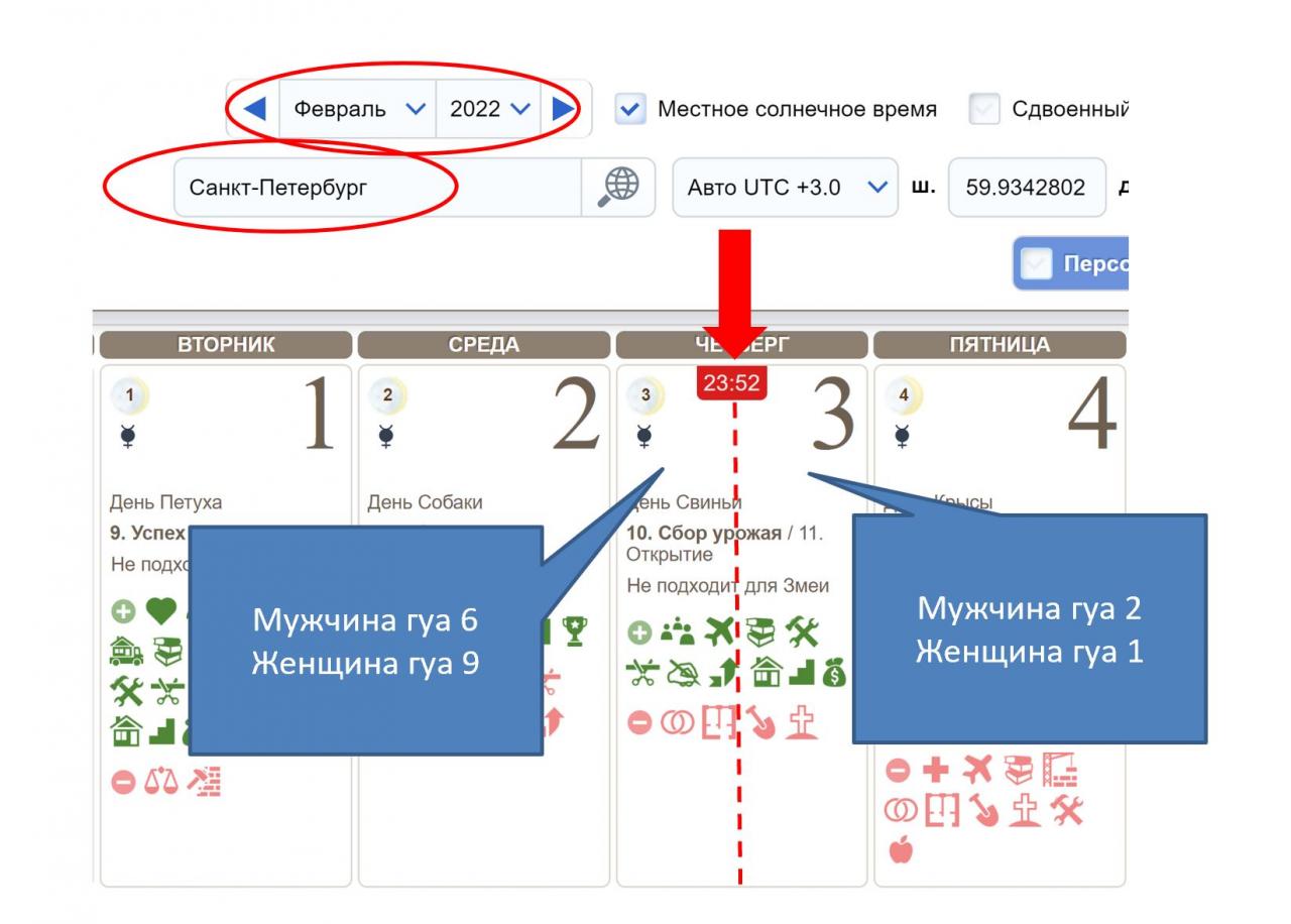 В Санкт-Петербурге, в 2022, год меняется 3 февраля в 23.52. Это значит, что у мужчины, родившегося в Питере 3 февраля 2022 до 23.52 гуа будет 6, у женщины – 9. А вот если мальчик родится 3 февраля после 23.52 – гуа уже будет 2, а у девочки – 1.