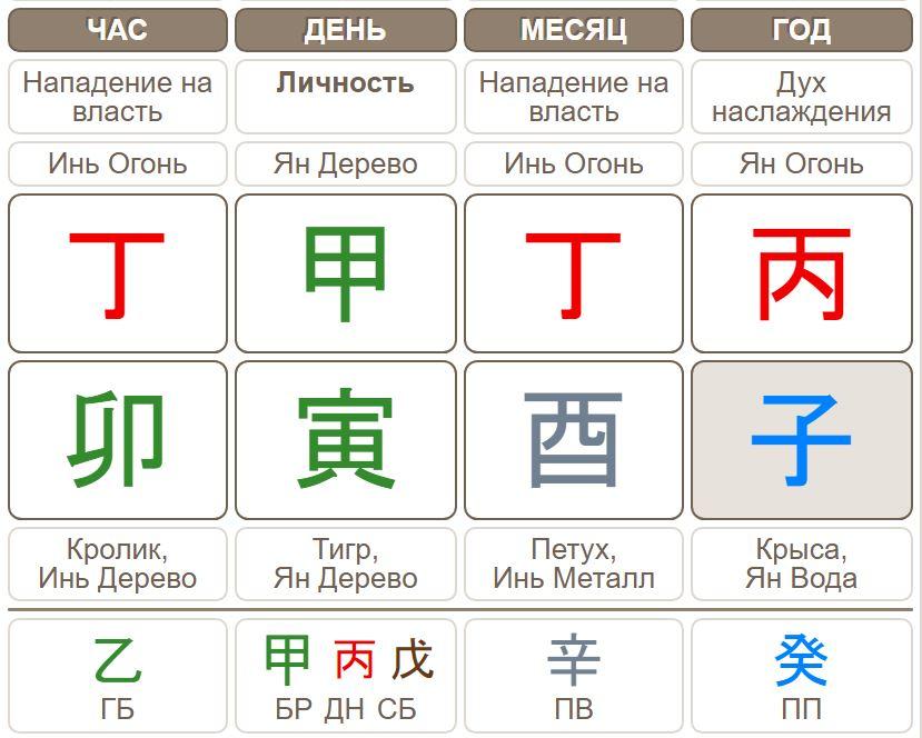 Дерево Ян, рождено не в сезоне поддержки, много самовыражения – Слабая карта. Значит любит: Ресурс и Братство, Дерево и Воду. Из интересного: в карте три Цветка Персика (только Лошади не хватает) и очень много Самовыражения.