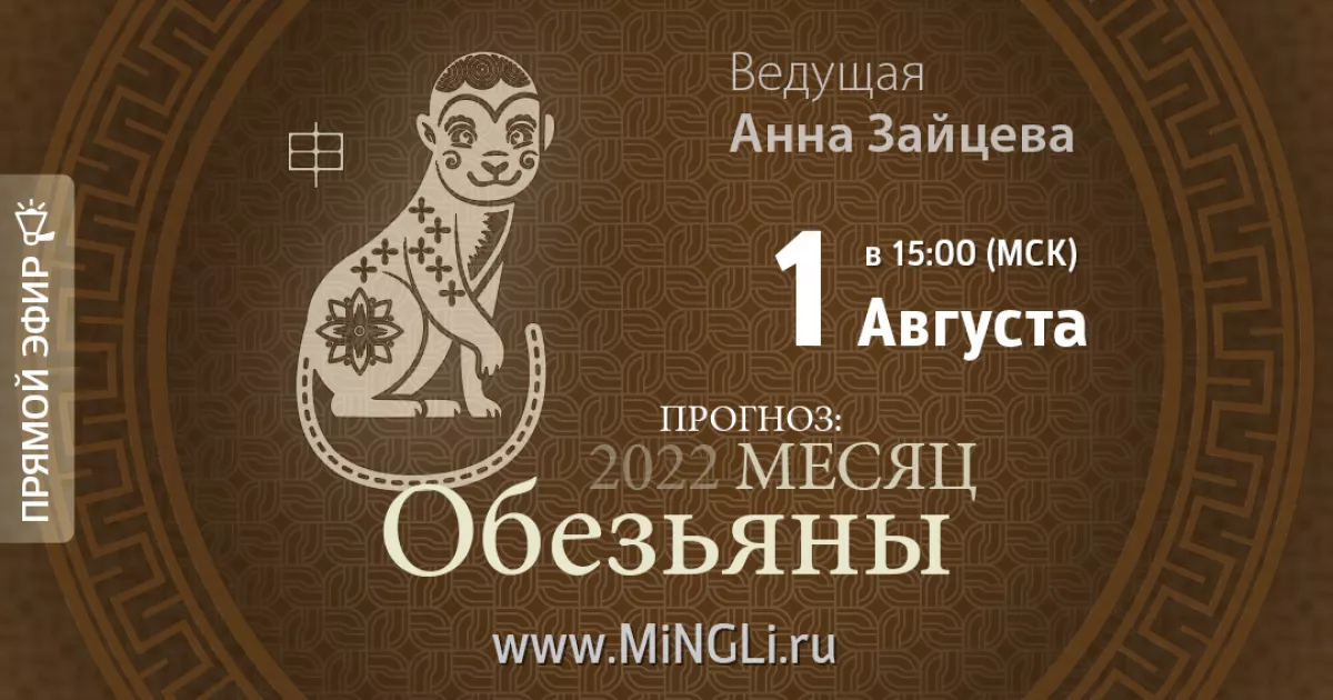 Тема эфира: «Бацзы: прогноз на месяц Обезьяны (август) 2022 года»