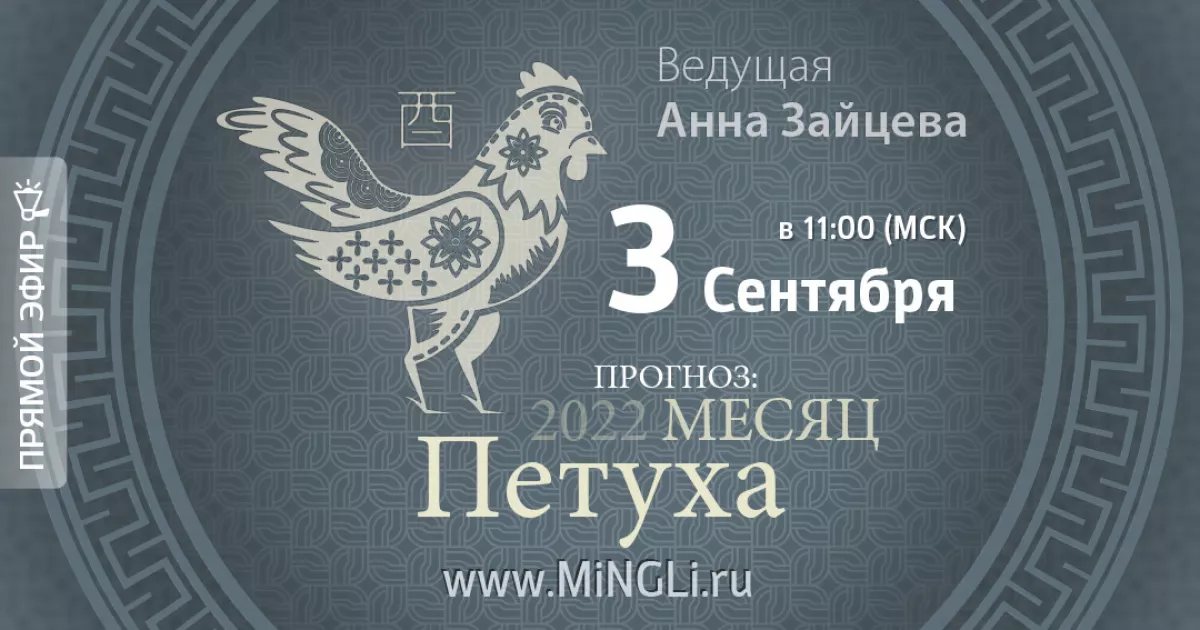 Приглашаем на эфир «Бацзы: прогноз на месяц Петуха (сентябрь) 2022 года» (прогноз по бацзы, прогноз на сентябрь 2022)