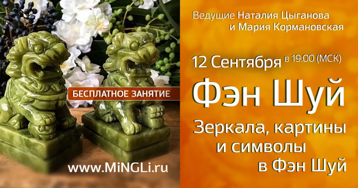 Приглашаем вас на открытую встречу, посвященную Фэн Шуй. Мы расскажем о зеркалах, картинах, статуэтках и прочих аксессуарах.