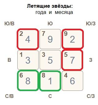 Восток. Сочетание звезд 1-3 может способствовать довольно агрессивному поведению, спорам, болезням печени и головокружениям.  Но в целом, сектор неплохой, если использовать его потенциал в свою пользу, хороший сектор для обучения, саморазвития, новых идей. Но для тех, кто проводит здесь много времени, важно контролировать свои эмоции.  Поэтому достигайте свои цели без перенапряжения, умея вовремя остановиться, оценить обстановку. Можно поместить здесь предмет красного цвета, хорошо жечь здесь свечи. Хорошо начинать ремонт с этого сектора! Очень хорошо проводить активации «Благородного помощника года Тай Ян» в секторе Кролика.