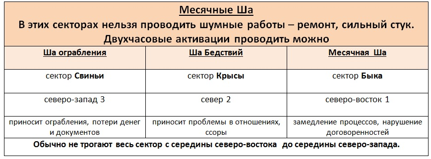 В разделе фэн шуй всегда в конце есть таблица с указанием месячных ша.