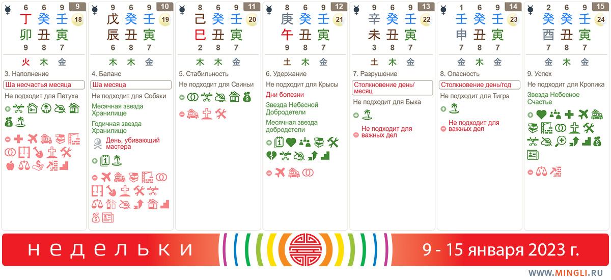 Основа для «Неделек» – это китайский календарь и альманах Тун шу. Оба они построены на цикличности энергий, за которой китайцы наблюдали много веков, описывая и систематизируя свои наблюдения. Китайский календарь – это повторяющиеся циклы приходящих энергий, а вот альманах Тун шу – сборник рекомендаций бытового характера. В Китае он издается ежегодно со времен древних императоров, содержит массу разнообразной информации на каждый день и является справочником по всем вопросам – приметы, праздники, время посева и уборки, астрономические сведения и так далее. В числе прочего Тун шу содержит рекомендации по ведению дел для людей разных годов рождения, что особенно для нас интересно!