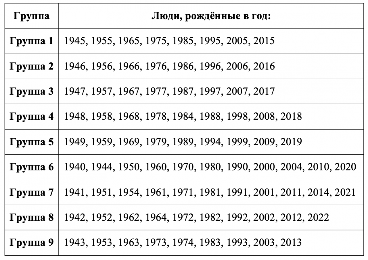 Для удобного чтения мы объединили годы рождения в группы. Если вы родились после 4-го февраля любого года, смело ищите свой год рождения в Таблице 1. Запомните, к какой группе вы относитесь, в тексте рекомендаций найдите описание для своей группы.