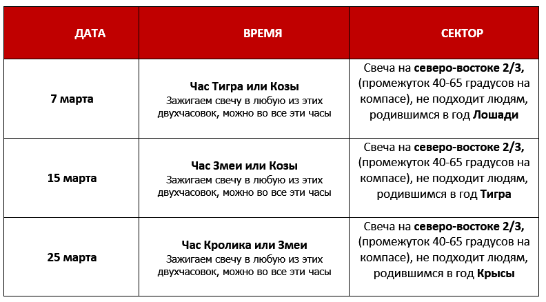 Даты активации на юге 2 – 13 марта в час Лошади, день не подходит для родившихся в год Крысы, 14 марта в час Лошади, день не подходит для родившихся в год Быка.