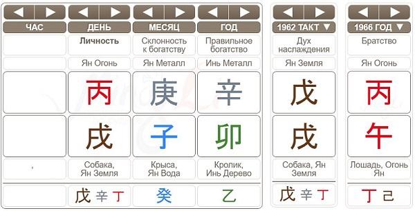 Федор Конюхов родился 12 декабря 1951 года в день янского Огня на Собаке. Мы не знаем час его рождения и можем только предполагать, какие элементы стоят у него в часовом столпе. В таких случаях можно посмотреть карту и сравнить периоды удачи и события которые происходили с человеком.