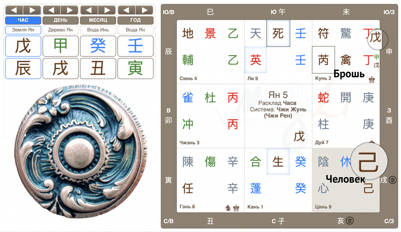 Небесный ствол опустился в дом Гэнь, там же врата Ранения, там же Путешествующая Лошадь часа расклада. Выдвинули предположение, что брошь перемещается, то есть, может быть в машине. Поискала в машине, но не нашла.