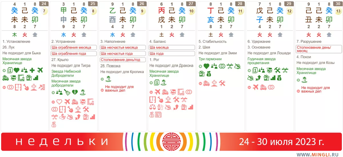 Рекомендации на неделю 24 – 30 июля (прогнозы, китайский гороскоп прогноз, восточный гороскоп на июль, гороскоп на июль, ба цзы июль)