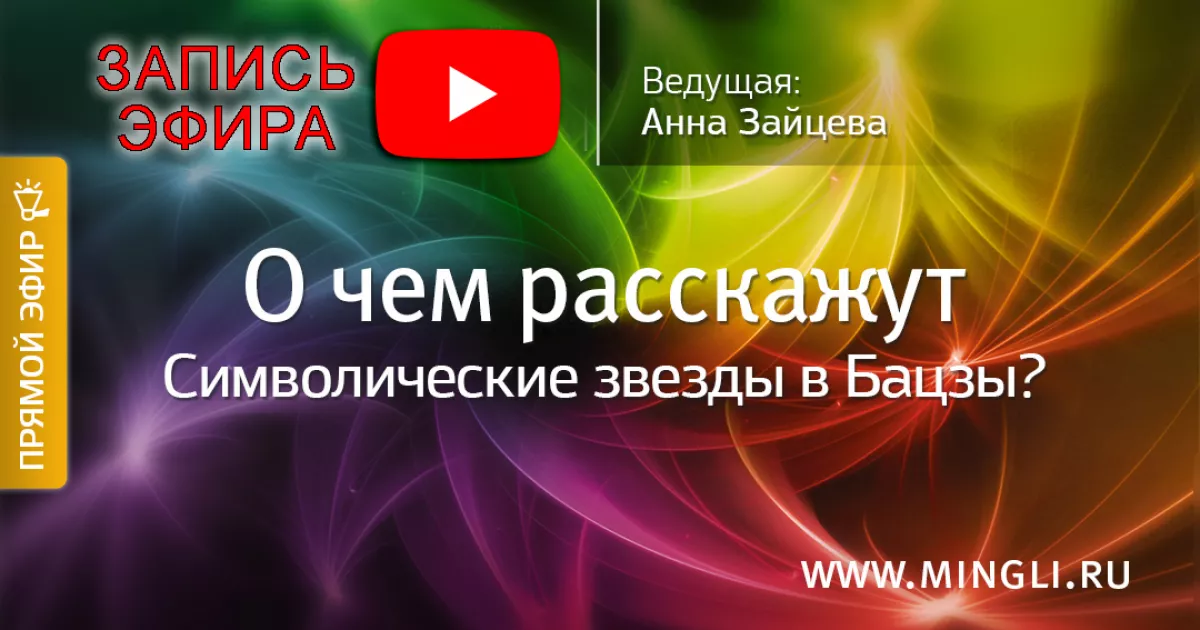 11 октября 2023 состоялся прямой эфир с Анной Зайцевой на тему «О чем расскажут Символические звезды в Бацзы».