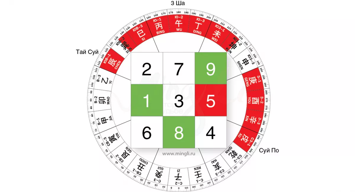 Три Ша, Сань Ша или Три убийцы, также достаточно сильная неблагоприятная энергия, которая в этом году пришлась на южный сектор. Как правило, лучше не трогать сектор 90 градусов, от середины юго-востока, до середины юго-запада. Три Ша могут принести финансовые потери, проблемы в отношениях, несчастные случаи, болезни, неприятности, задержки. Поэтому их не тревожат ремонтом или земляными работами. Единственная возможность отремонтировать что-то в секторе Трех Ша – сделать это зимой 2024, тщательно выбирая дату.
