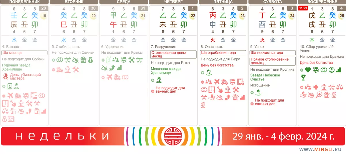 29 января, понедельник. Неделя начинается достаточно вяло, хотя день и благоприятный 😊. Ша месяца может не дать выполнить все, что задумано, поэтому не перегружайте день делами. Используйте его для планирования, пополнения запасов, распределения задач, сортировки бумаг на полках, можно покупать что-то полезное в хозяйстве. Сегодня отдыхают фэншуисты – делать замеры нельзя.