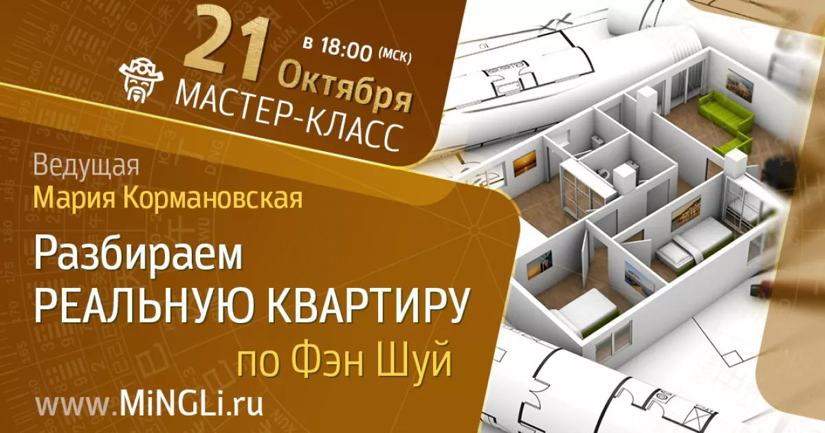21 октября в 18:00 (по Мск) мы проведем для вас уникальный мастер-класс онлайн, где в режиме реального времени рассмотрим Фэн Шуй квартиры одного из наших подписчиков!