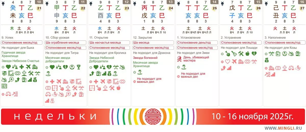 Рекомендации на неделю 10-16 ноября (ба цзы прогноз 2025, прогноз гороскоп на ноябрь)