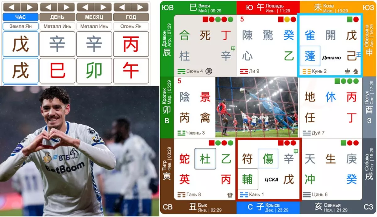 Начнём с дворца Кань, где базируется наш герой НС , отвечающий за ЦСКА. Сам ствол пока ещё не врубил турбо-режим: зимняя спячка даёт о себе знать, силы набираются медленно, как трава на даче в апреле. Структура настойчиво шепчет про оборону. А Врата Ранения, наоборот, рвутся в бой, искрят и требуют крови соперника. Звезда  辅 Тянь Фу занудно напоминает: «Работаем по плану, мальчики, никакой импровизации». А Дух  Чжи Фу подбадривает: «Всё будет хорошо, ну или почти хорошо».