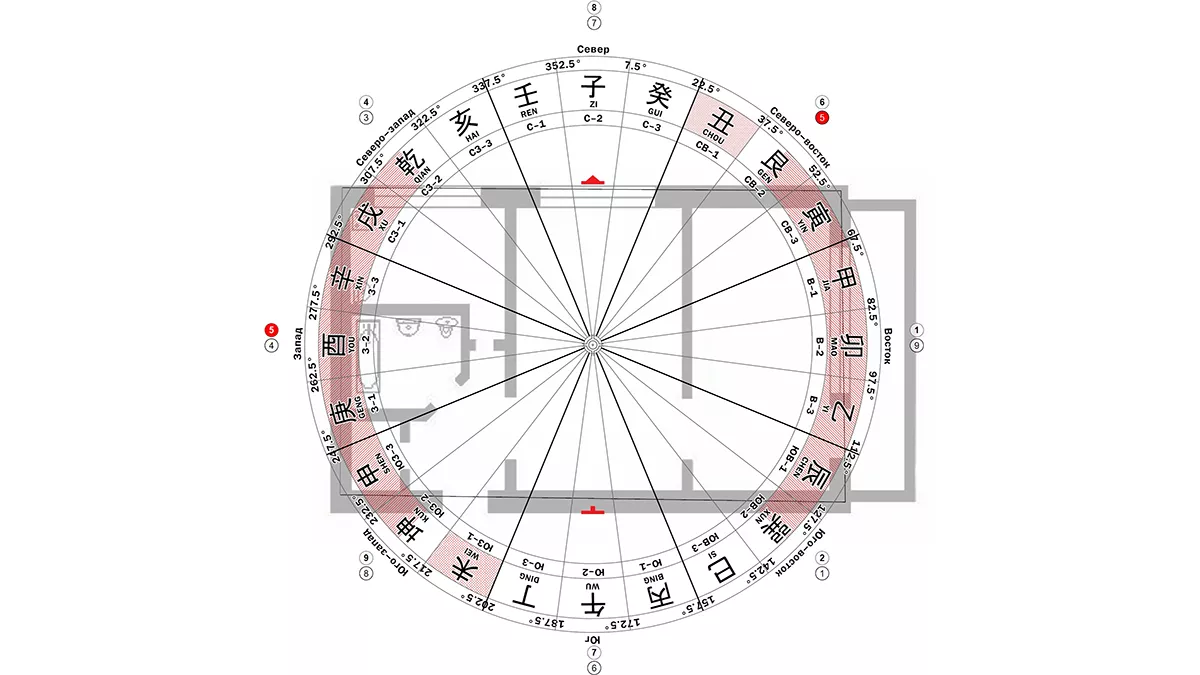 Ремонт не стоит делать в домах с тылом на северо-восток, восток, запад (Отмечены красным цветом на схеме. Схема сделана в программе Шаблон 24 горы). В секторах запад, восток, северо-восток, юго-восток не стоит проводить шумные ремонтные работы.