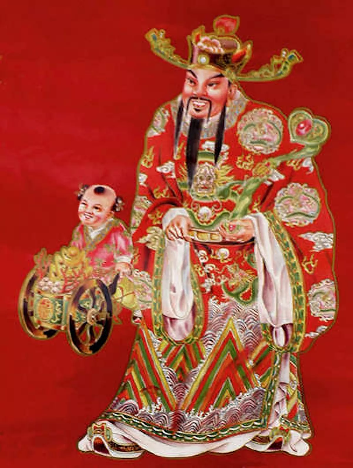 Классический ритуал начинается на улице, вне дома; «Портрет» Бога Богатства устанавливается перед угощением и ароматическими палочками. Пожелания пишутся заранее. Обычно Бога Богатства приветствуют еще на улице стоя лицом к нему, после медитации. Сжигают китайцы бумажные деньги (не настоящие, конечно) и изображение Бога Богатства прошлого года. Далее новое изображение Бога вносится в дом, пятясь с юго-востока на северо-запад. Рекомендуют делать 3, 8, 13, 18, 23 или 28 шагов.