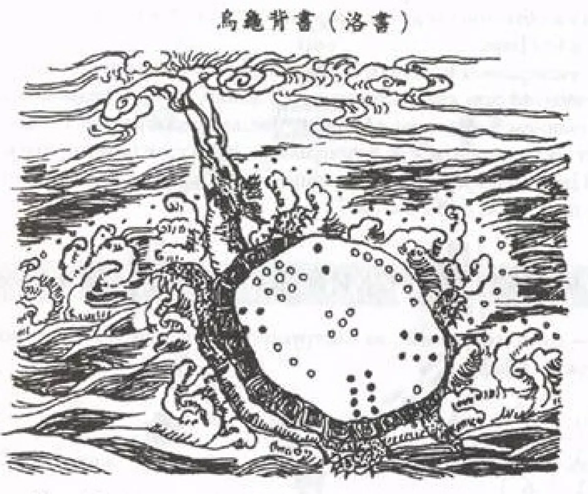 4 тысячи лет назад (по разным данным) Император Великий Юй увидел на берегу реки черепаху со знаками на спине. Когда их перерисовали, то получился магический квадрат, названный Ло Шу (Письмена реки Ло); сумма точек в каждом ряду квадрата равняется 15-ти. Светлые точки (нечетные числа) – ян, темные точки – инь.