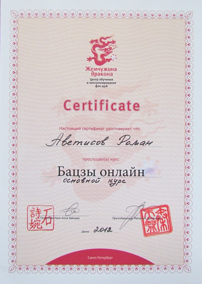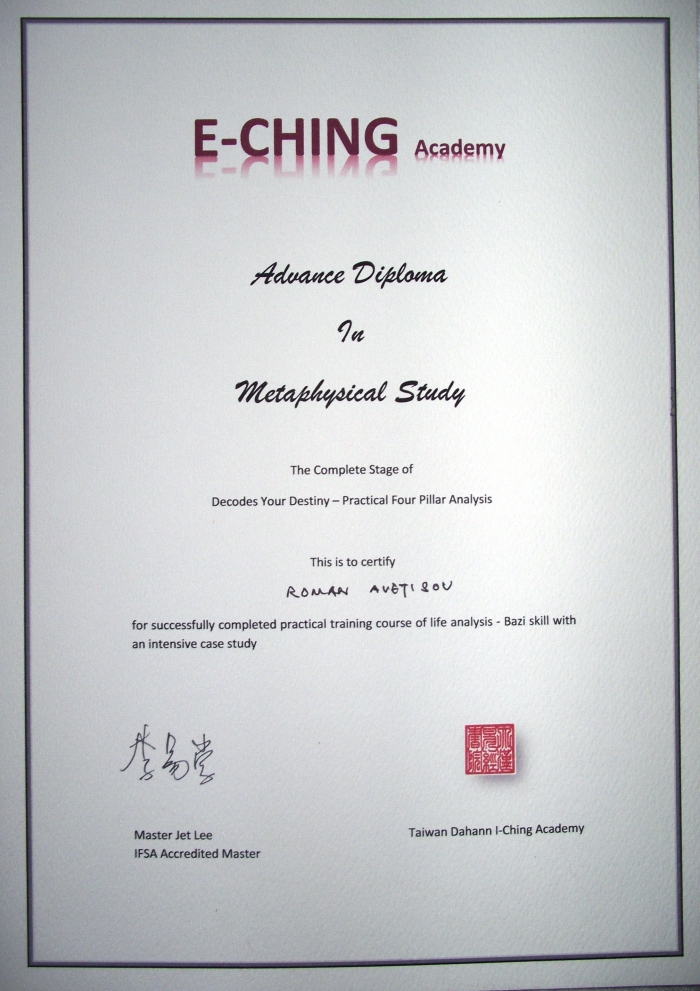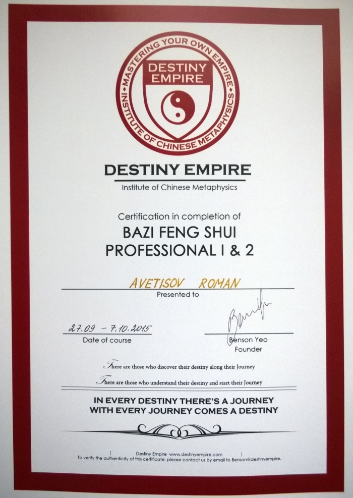Добрый день. Являюсь консультантом по китайской астрологии Ба Цзы и классическому Фэн-шуй с 2012 года.