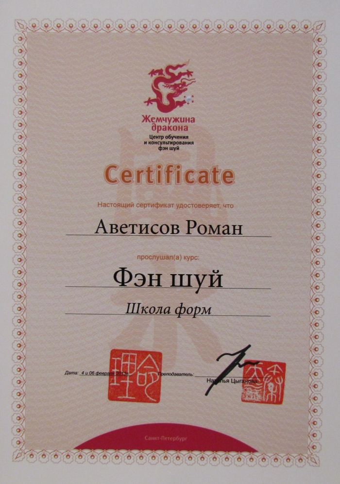 С моими работами, а также с дополнительной информацией обо мне можно ознакомиться в интернете на моем сайте, набрав в поисковике: "Роман Аветисов фэн-шуй".