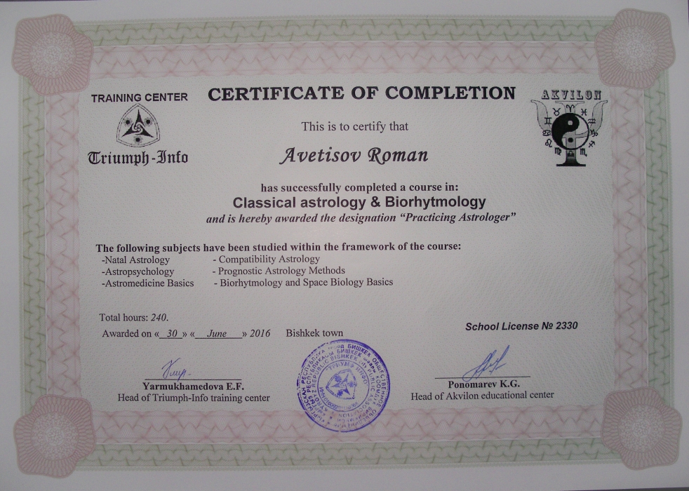 Состою в реестре астрологов России с 2016 года.