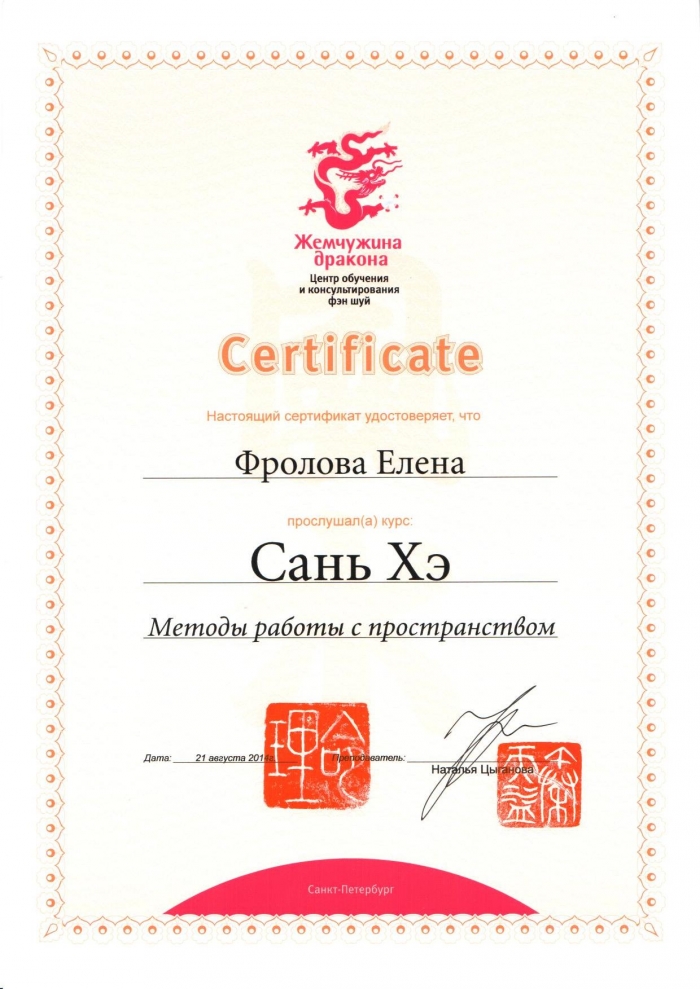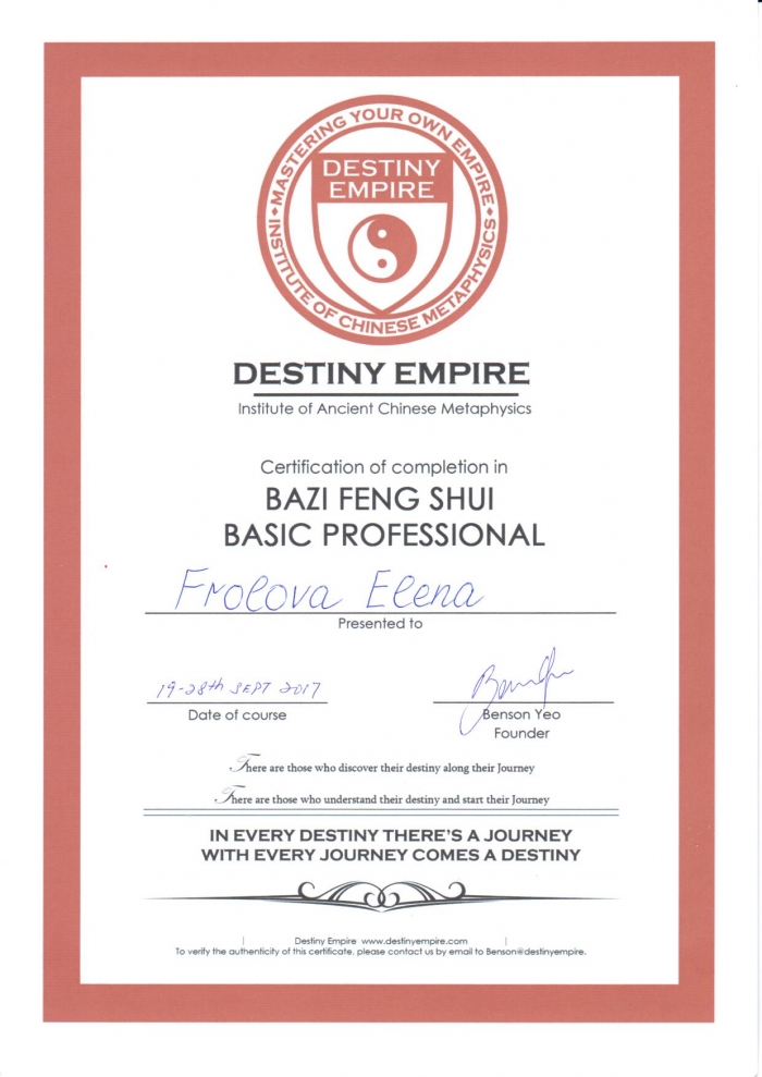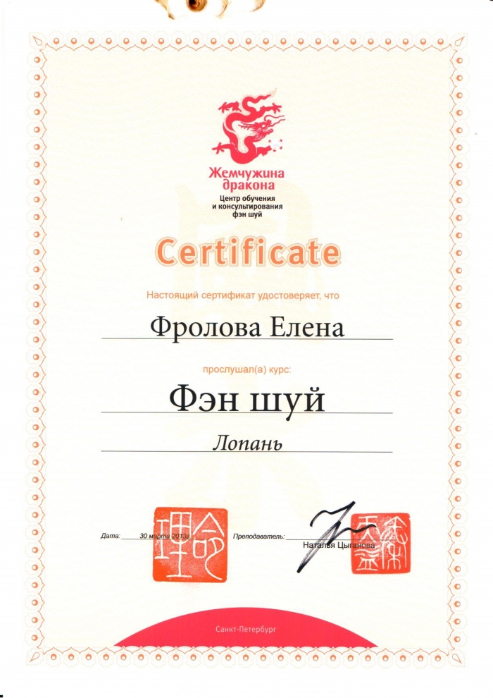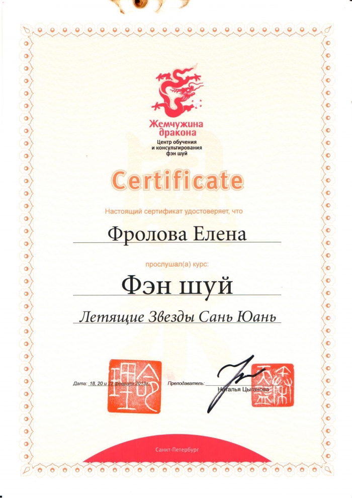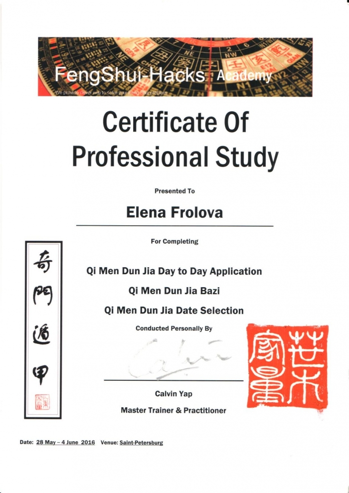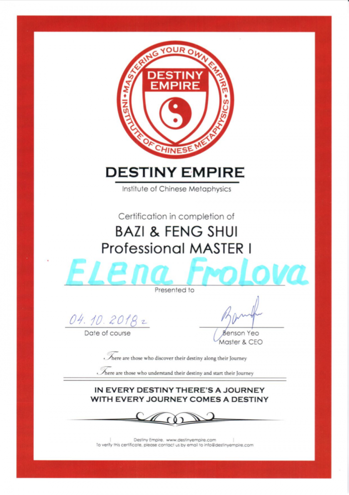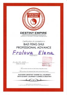 Начиная с 2009 года много и настойчиво училась у отечественных Мастеров китайской метафизики.
