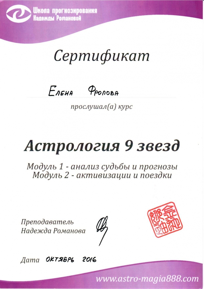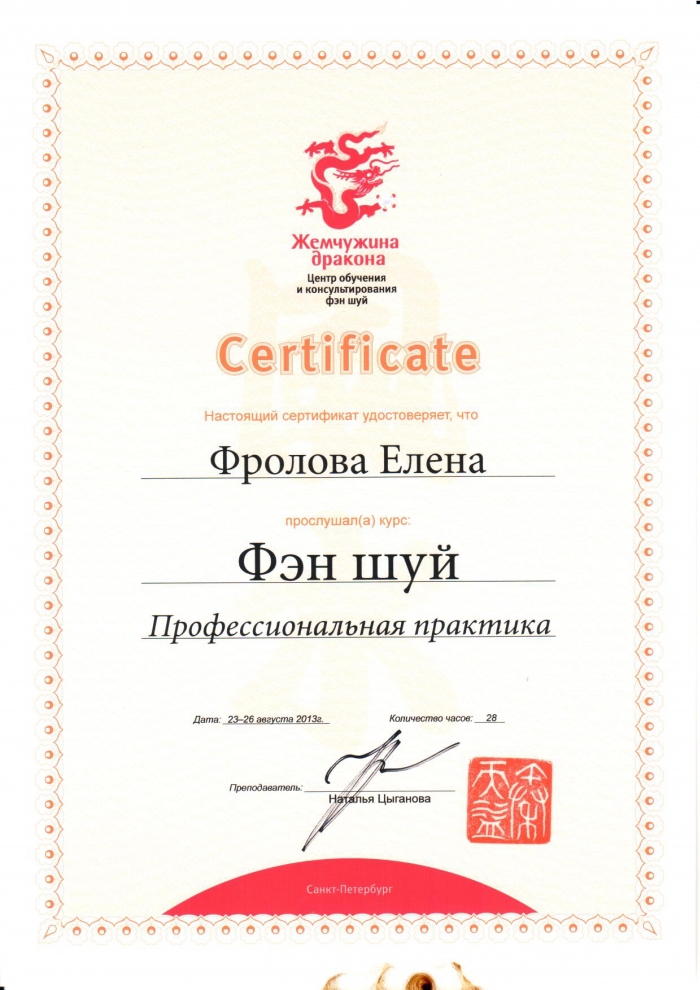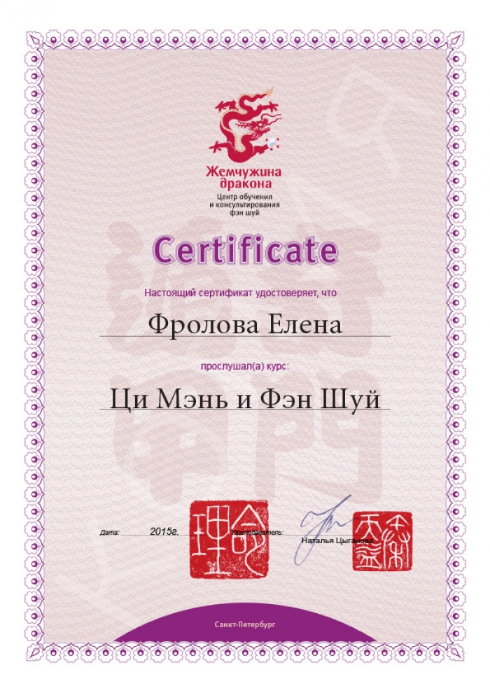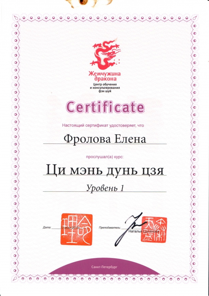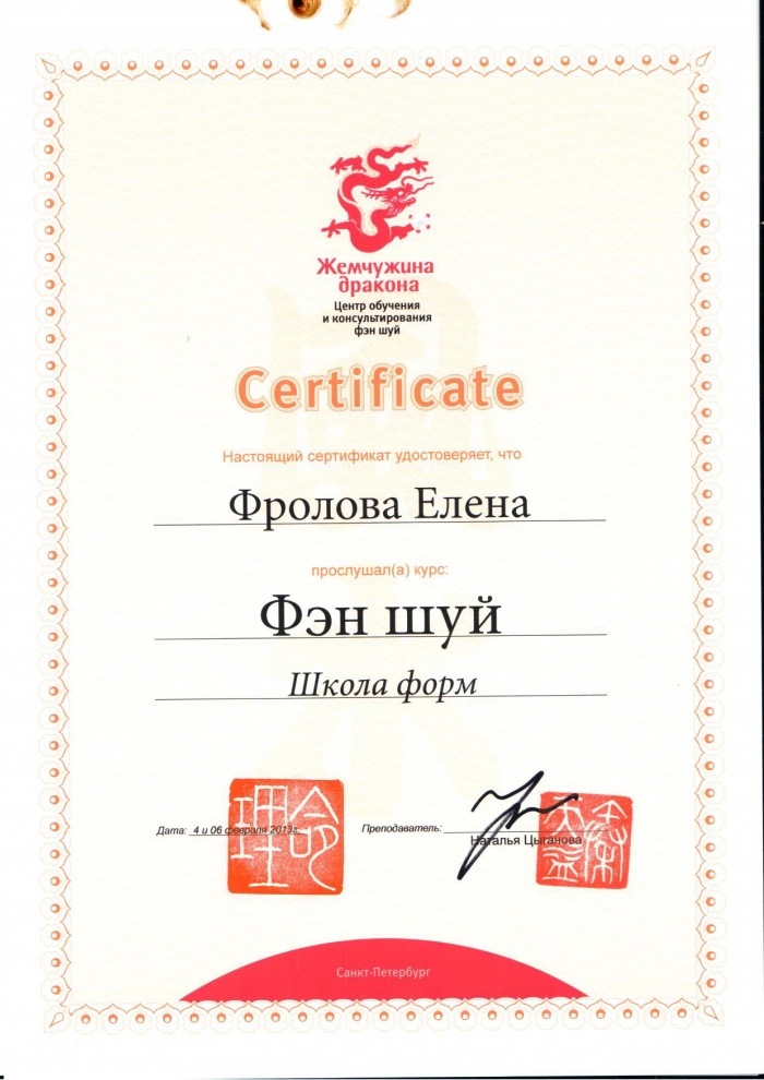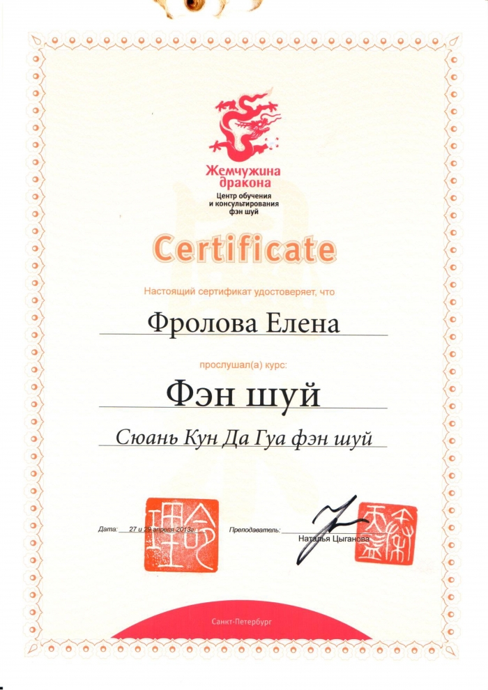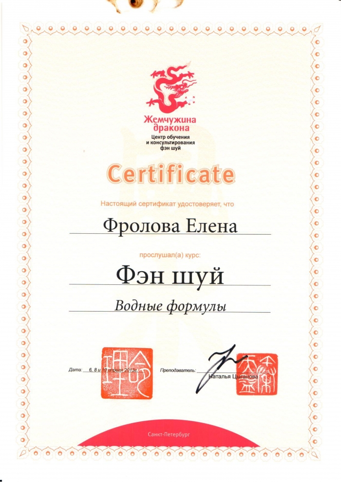 Начиная с 2009 года много и настойчиво училась у отечественных Мастеров китайской метафизики.