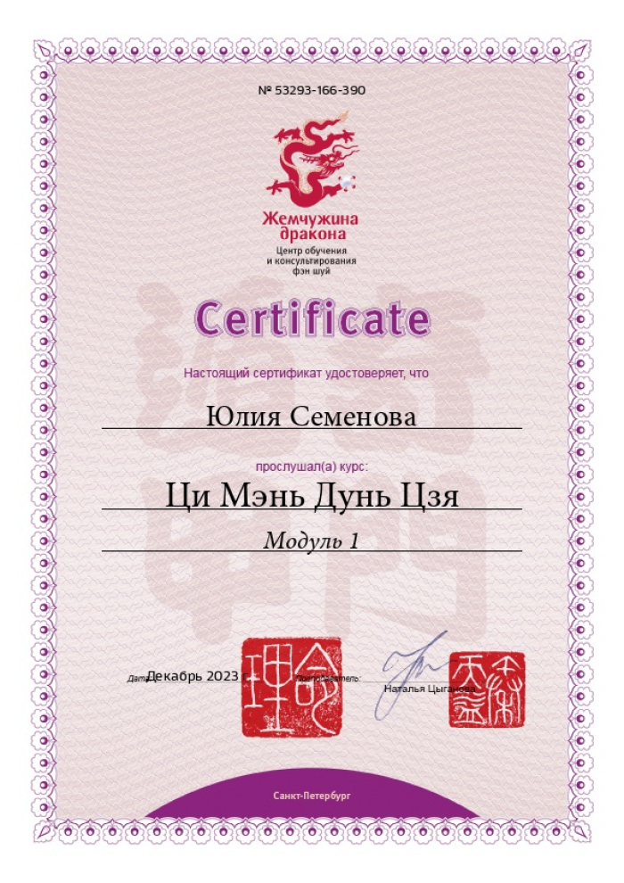 Будучи бухгалтером всю свою сознательную жизнь, построив хорошую карьеру, благодаря моим учителям в мир китайского искусства, я утвердилась в своем намерении ступить на новый путь, тот самый, что все время меня затягивал с самого детства в моем подсознании, правда тогда я этого не понимала. И сейчас я очень хочу помогать тем, кто запутался, как однажды я, и кто хочет изменить свою жизнь в лучшую сторону, открыв истинного себя.