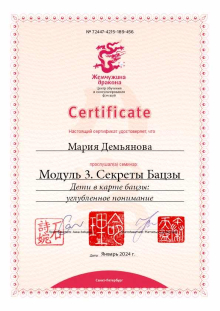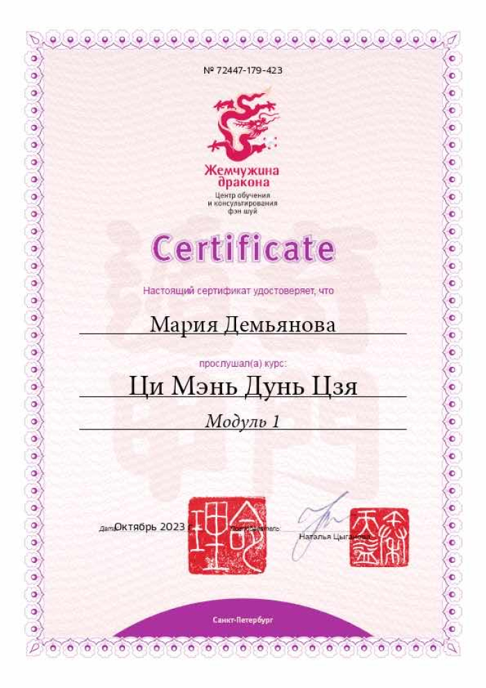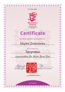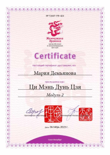Также я состою в Клубе фэн шуй, Клубе бацзы и Клубе ци мэнь школы Mingli, что позволяет дальше совершенствовать свои практические навыки, и я рада быть частью дружной команды.